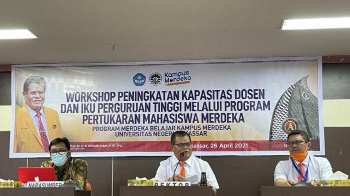 Workshop peningkatan kapasitas dosen dan Indikator Kinerja Utama perguruan tinggi melalui program pertukaran mahasiswa merdeka di Lt 14 Gedung Menara Pinisi UNM.