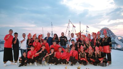Penampilan puluhan musisi dan penari tradisional ini disaksikan langsung Wali Kota Makassar, Moh. Ramdhan ‘Danny’ Pomanto dan Wagub Sumbar, Audy Joinaldy.