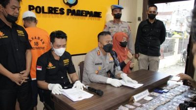 Parepare, Newstime.id – Kurir narkoba berinisial AR di Parepare, Sulawesi Selatan (Sulsel) ditangkap polisi setelah kedapatan membawa 3.000 pil ekstasi dan sabu seberat 49,9 gram. AR hendak mengelabui petugas dengan menyembunyikan barang tersebut di dalam kardus air mineral.