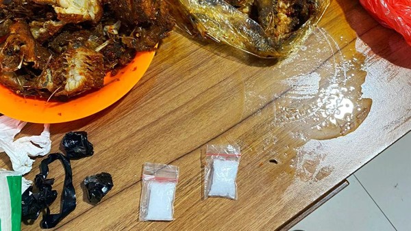 Barang titipan tersebut berupa makanan yang berisikan ikan dan sayur. Saat petugas melakukan pemeriksaan ditemukan dua bungkusan hitam mencurigakan yang terselip di antara makanan.