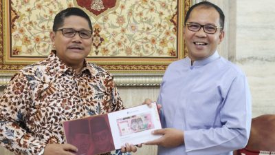 Pada kesempatan itu, Causa Iman Karana juga menyerahkan contoh uang baru kertas Rupiah emisi 2022, telah diterbitkan Kamis kemarin (18/08), kepada Danny Pomanto