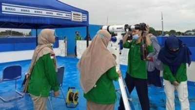 Kantor BMKG Makassar, Jalan Prof Abdurrahman Basalamah, Selasa (8/11/2022) tim pemantau mulai bersiap melakukan pemantauan pukul 16.50 Wita. Mereka tampak mengenakan rompi hijau.