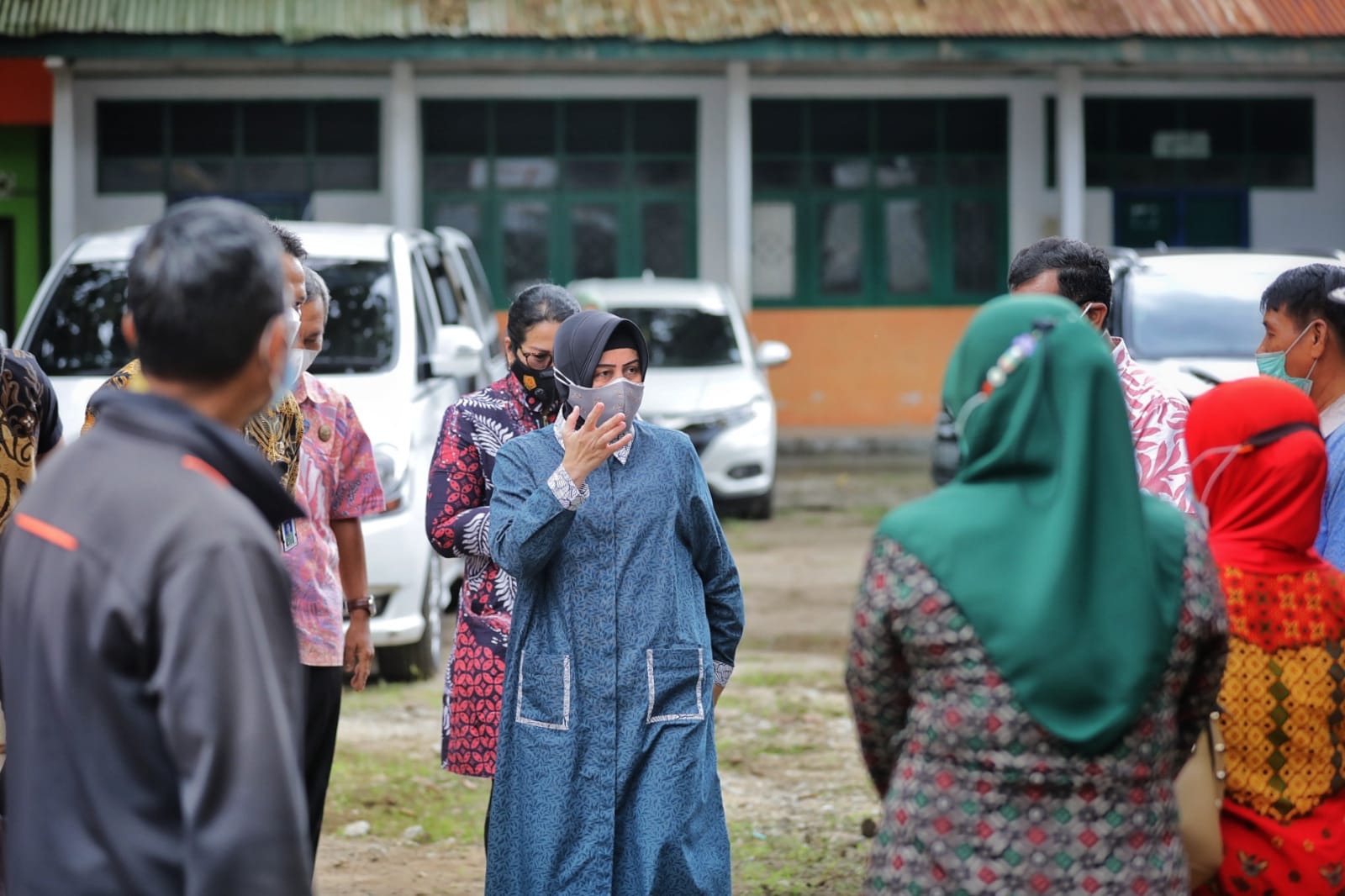 Dalam peninjauan lokasi Indira Yusuf Ismail didampingi oleh team dari Ikatan Arsitek Indonesia, serta dari Dinas Pendidikan Kota Makassar.