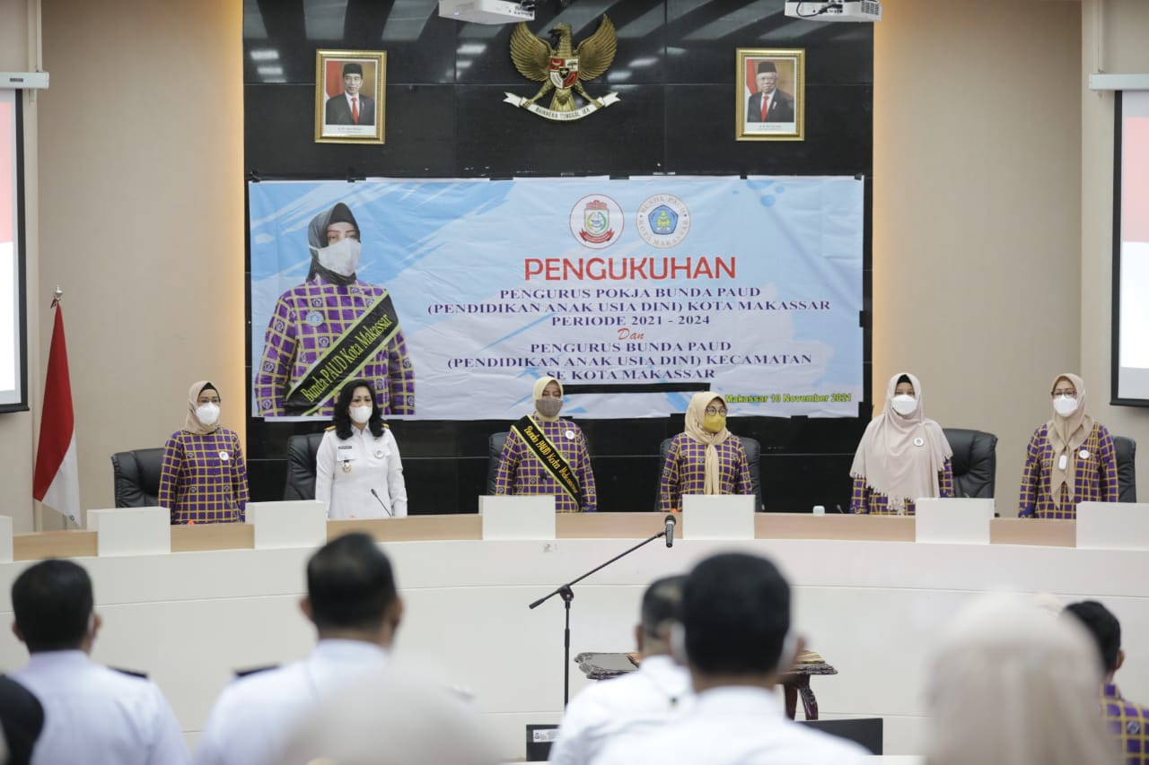 MAKASSAR,Newstime.id – Bunda Paud Kota Makassar, Indira Jusuf Ismail melantik 15 Bunda Paud Kecamatan se Kota Makassar, serta pengurus Pokja Bunda Paud Kota Makassar di Ruang Sipakatau, Kantor Balaikota, Rabu (10/11/2021).