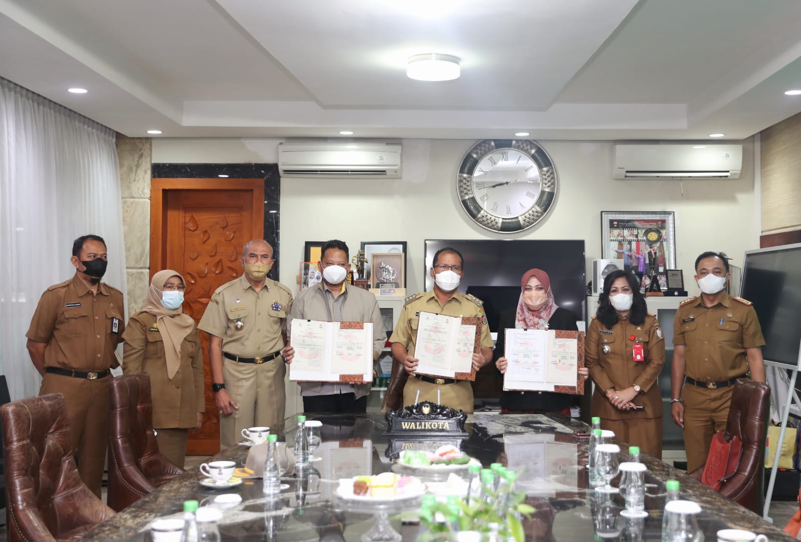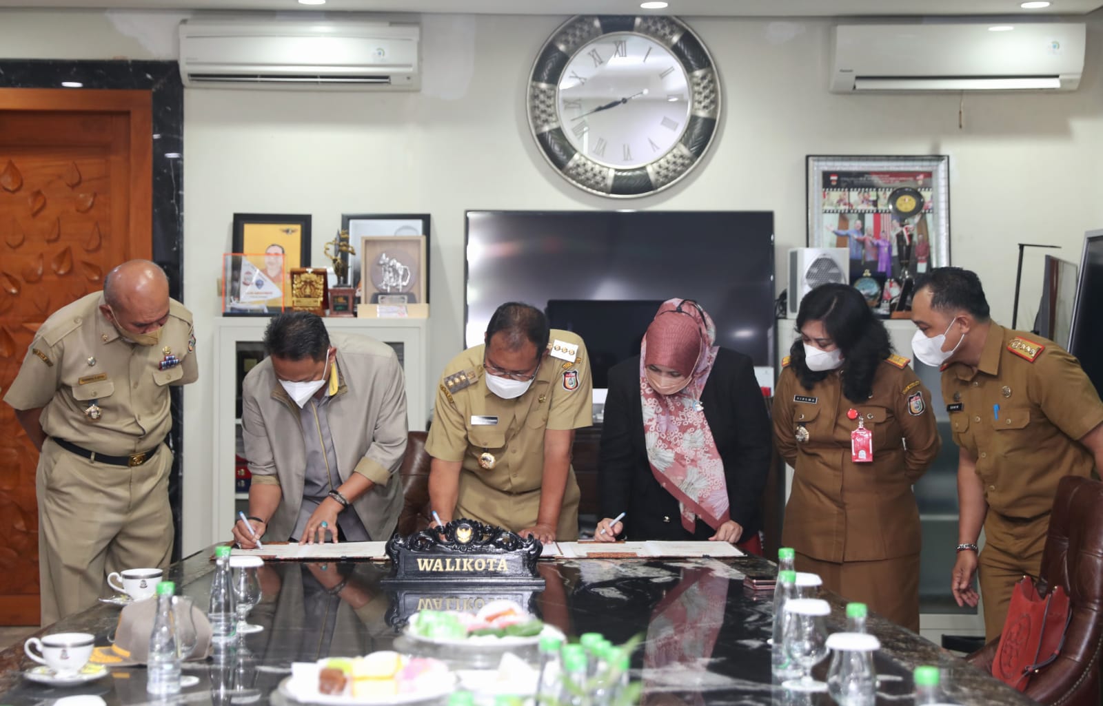 MAKASSAR,Newstime.id — Wali Kota Makasar, Moh. Ramdhan ‘Danny’ Pomanto melakukan Penandatanganan Momerandum Of Understanding (MoU) dengan BPJS Ketenagakerjaan (BPJSTK), di kediaman pribadinya, Jalan Amirullah, Selasa (16/11/21).