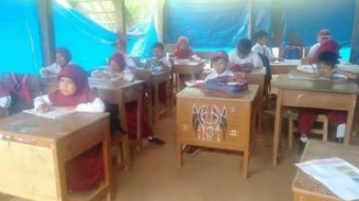“Semua barang seperti bangku, lemari, buku-buku pelajar dipindahkan ke kolong rumah warga. Jadi kelas 1 sampai kelas 6 keseluruhan kita punya 87 siswa. Dibagi satu kolong rumah ada dua kelas,” ungkap Nurdin.
