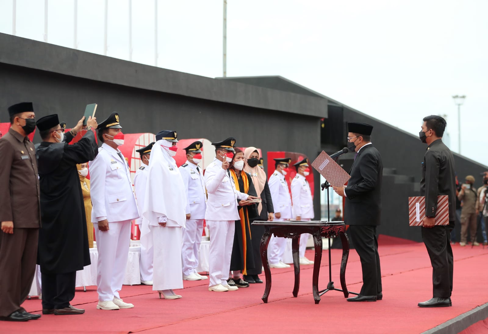 Proses pelantikan 15 pejabat camat dilakukan di Anjungan Pantai Losari, Jumat (27/8). Mereka adalah Mahyuddin Camat Biringkanayya, Arman Camat Bontoala, Alamsyah Sahanuddin Camat Makassar, Andi Fadli Camat Manggala, Edward Supriawam Camat Mamajang.