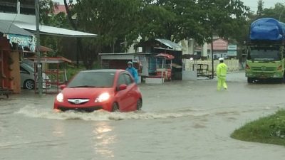 Qadriyansah mengatakan ketinggian banjir mencapai 50 centimeter dan menggenangi permukaan jalan sepanjang 100 meter.