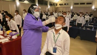 MAKASSAR,Newstime.id – Sebanyak 70 anggota Pasukan Pengibar Bendera Pusaka (Paskibraka) Makassar menjalani tes swab antigen oleh tim medis, di Hotel Horison, Makassar, Senin malam (16/8/2021).