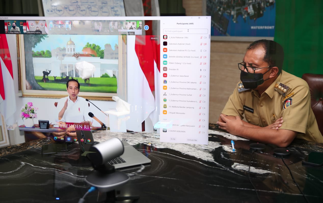 MAKASSAR,Newstime.id — Wali Kota Makassar, Moh. Ramdhan ‘Danny’ Pomanto mengikuti virtual bersama Presiden RI, Joko Widodo, Senin (19/7/21).