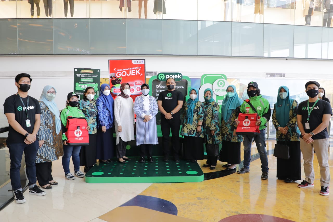 Selain itu, Ketua Tim Penggerak PKK juga menyerahkan bag/ tas pengantaran secara simbolis bagi mitra Gojek Makassar di Trans Studi Mall Makassar, Jumat (17/09/2021).