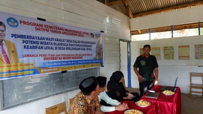 MAKASSAR, Newstime.id – Dalam meritis pengembangan pariwisata olahraga di Desa Erelembang, Kabupaten Gowa, civitas akademik Universitas Negeri Makassar bekerjasama dengan pemerintah untuk merealisasikan program kemitraan masyarakat (PKM) DRTPM tahun anggaran 2022 sebagai pemberdayaan masyarakat desa dalam pengembangan potensi wisata olahraga dan pangan berbasis kearifan lokal Desa Erelembang, Kabupaten Gowa.