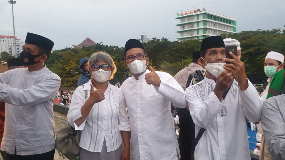 Hal tersebutlah yang nampak saat Pemerintah Kota Makassar menggelar shalat subuh berjamaah di Anjungan Pantai Losari Makassar, Minggu (17/4/2022).