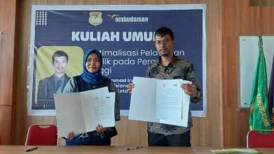 MAKASSAR, Newstime.id – Universitas Sawerigading Makassar gelar Kuliah umum Pelayanan Publik yang dirangkaikan dengan Memorandum of understanding (MoU) antara Fakultas Hukum Universitas Sawerigading dengan Ombudsman Kota Makassar, Rabu (14/9/2022).