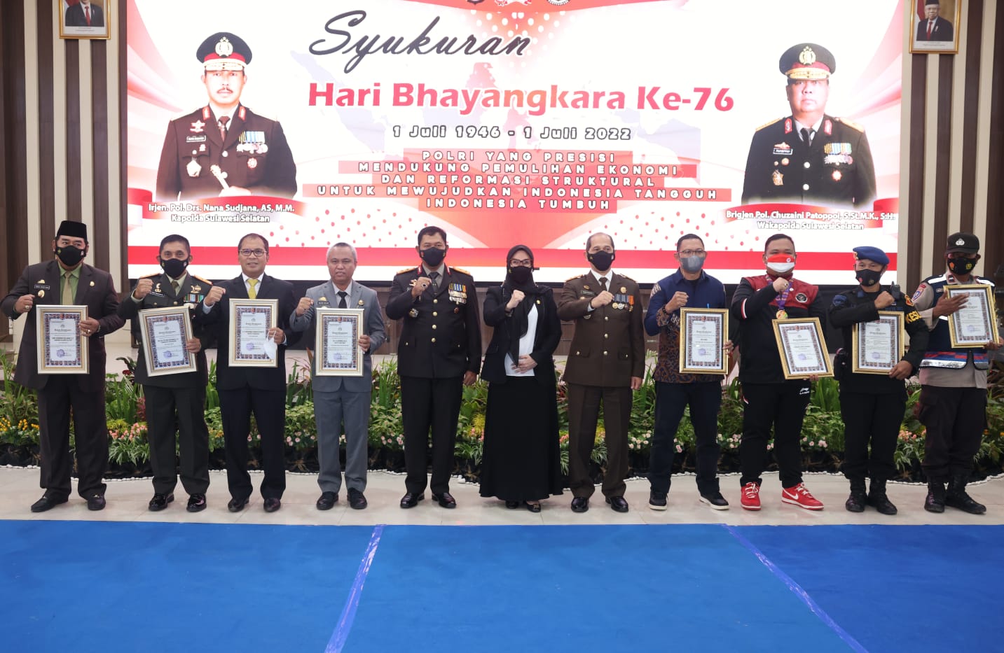 Peringatan hari Bhayangkara yang diisi oleh serangkaian kegiatan ini juga dimanfaatkan untuk memberikan penghargaan pada Bupati/Wali Kota akan peran sertanya dalam mendukung pelaksanaan tugas kepolisian di Sulsel.