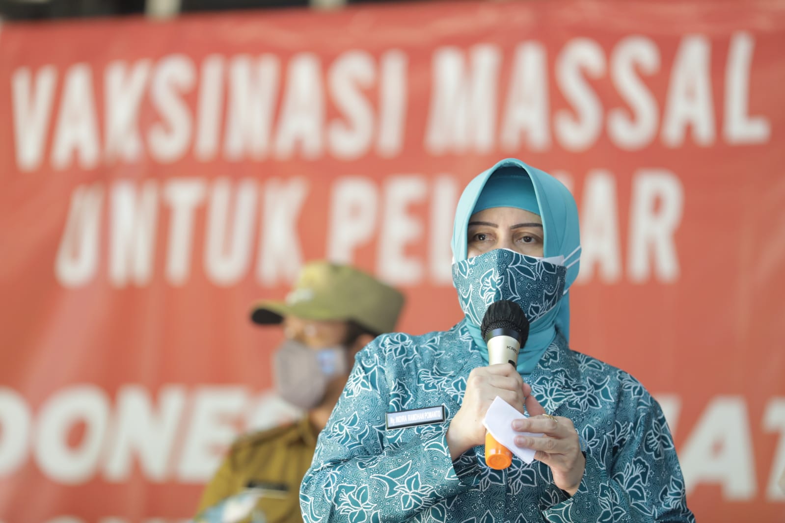 Persiapan Pembelajaran Tatap Muka, Ketua TP PKK Kota Makassar Tinjau Pelaksanaan Vaksinasi