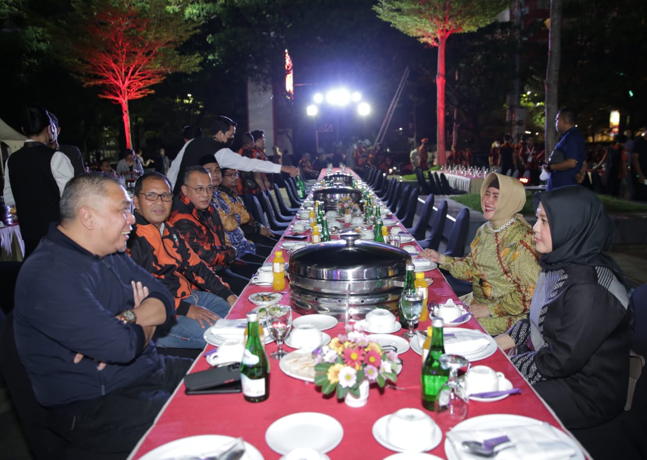 MAKASSAR,Newstime.id – Wali Kota Makassar Moh Ramdhan “Danny” Pomanto bersama Wakil Wali Kota Makassar Fatmawati Rusdi dan Ketua TP PKK Kota Makassar Indira Jusuf Ismail menjamu para peserta Musyawarah Wilayah VII Pemuda Pancasila Provinsi Sulawesi Selatan di Anjungan Pantai Losari Makassar, Jum’at (1/7/2022).