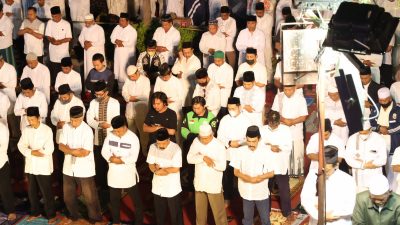 MAKASSAR, Newstime.id — Ribuan jamaah padati Anjungan City Of Makassar untuk melaksanakan Shalat Subuh Berjamaah, dan Doa Bersama menyambut peringatan Hari Ulang Tahun (HUT) ke – 415 Tahun Kota Makassar, Sabtu (5/11/2022).