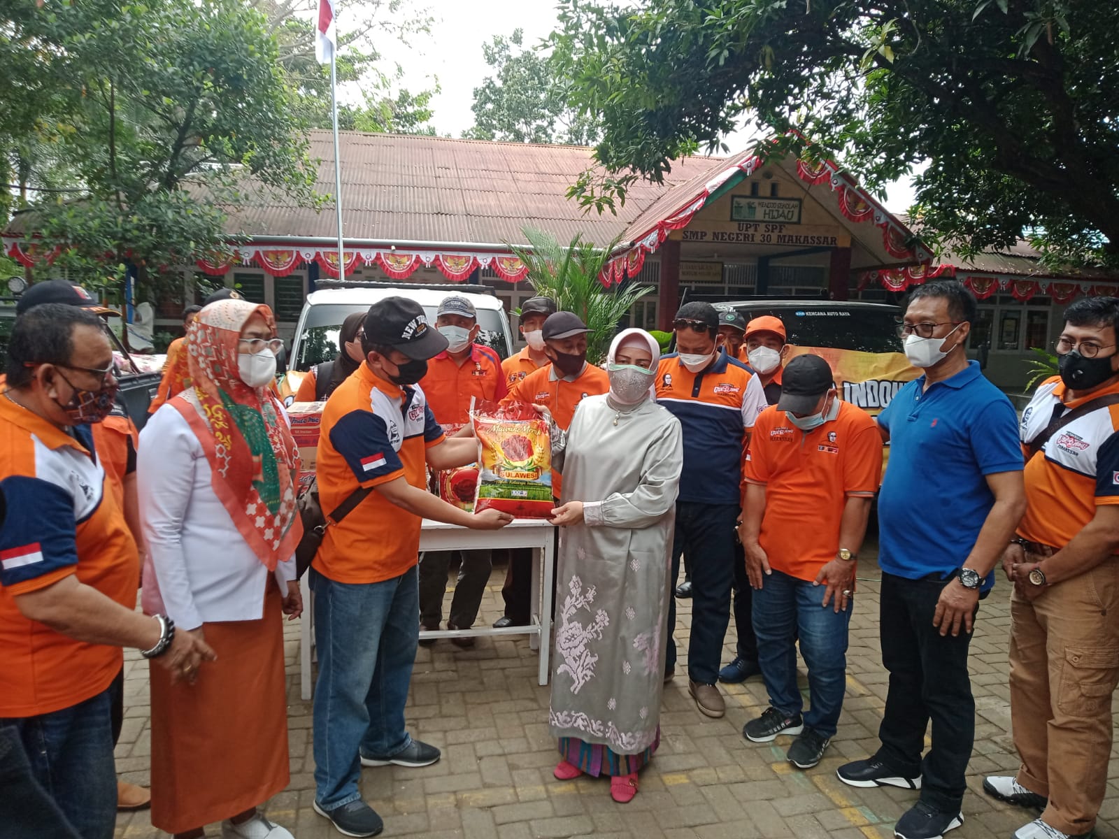 Makassar,Newstime.id – Meringankan beban masyarakat ditengah pandemi Covid19, Bunda Paud Kota Makassar bersama Komunitas GOlorong gelar bakti sosial di UPT SPF SMPN 30 Makassar, Jumat (06/08/2021).