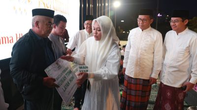 Penyerahan bantuan disaksikan Ketua Baznas Kota Makassar Ashar Tomanggung dan ribuan jemaah yang mengikuti Salat Subuh Berjamaah yang menjadi program unggulan pemerintah kota.
