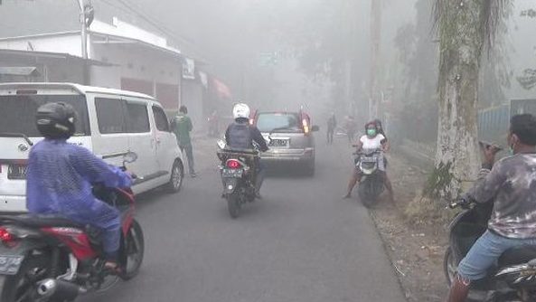Sementara di lokasi mirip balai desa it,u tampak langit terlihat pekat oleh abu yang disebut perekam video adalah abu vulkanik. Warga yang terus bergerak mencari tempat aman itu pun panik.