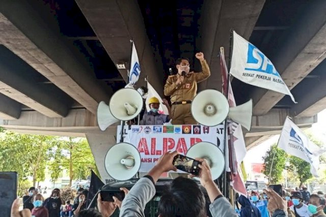 Kadisnaker Kota Makassar Datangi Aksi Hari Buruh di Flyover, Janji Tindak Staf yang Melanggar