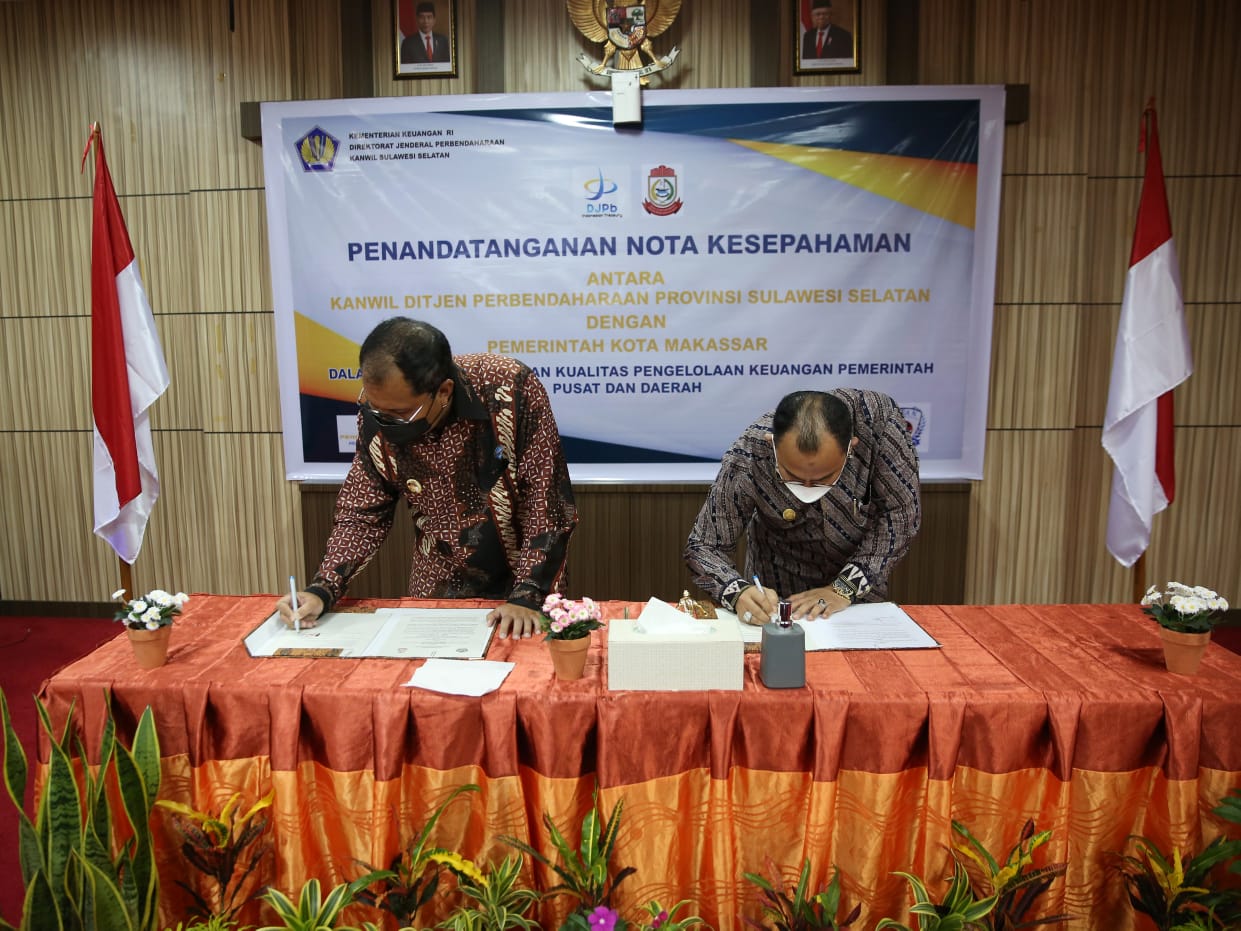 MAKASSAR,Newstime.id ~ Dalam rangka mewujudkan sinergi pengelolaan keuangan daerah yang bebas korupsi dan bersih, Pemerintah kota Makassar bersama dengan kantor wilayah Direktorat Jenderal Perbendaharaan (DJPb) Provinsi Sulawesi Selatan melaksanakan penandatanganan MoU. Bertempat di Ruang VIP Gedung Keuangan Negara II Makassar Jalan Urip Sumoharjo KM.Kamis 8/7/2021.