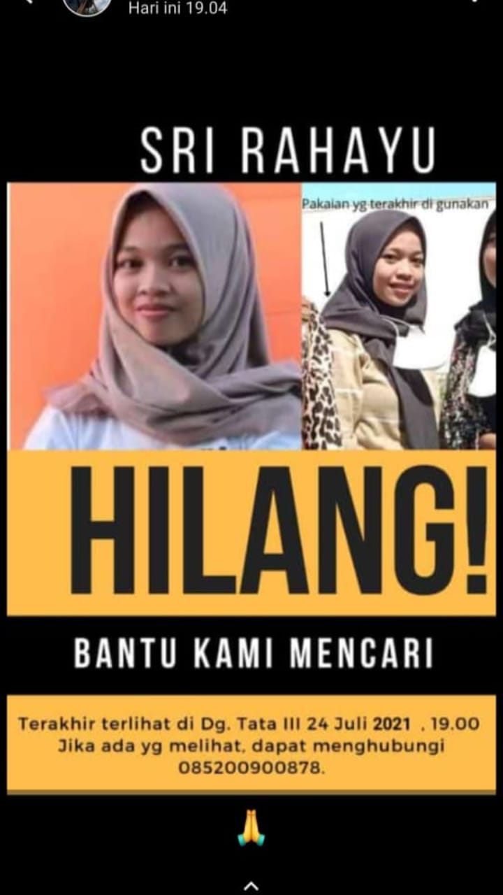 Pada hari Minggu (25/7), keluarga nya pun melaporkan kehilangan Sri Rahayu ke Polsek Tamalate. Hingga hari ini, Jumat (30/7) belum ada kabar keberadaan dari Sri Rahayu.