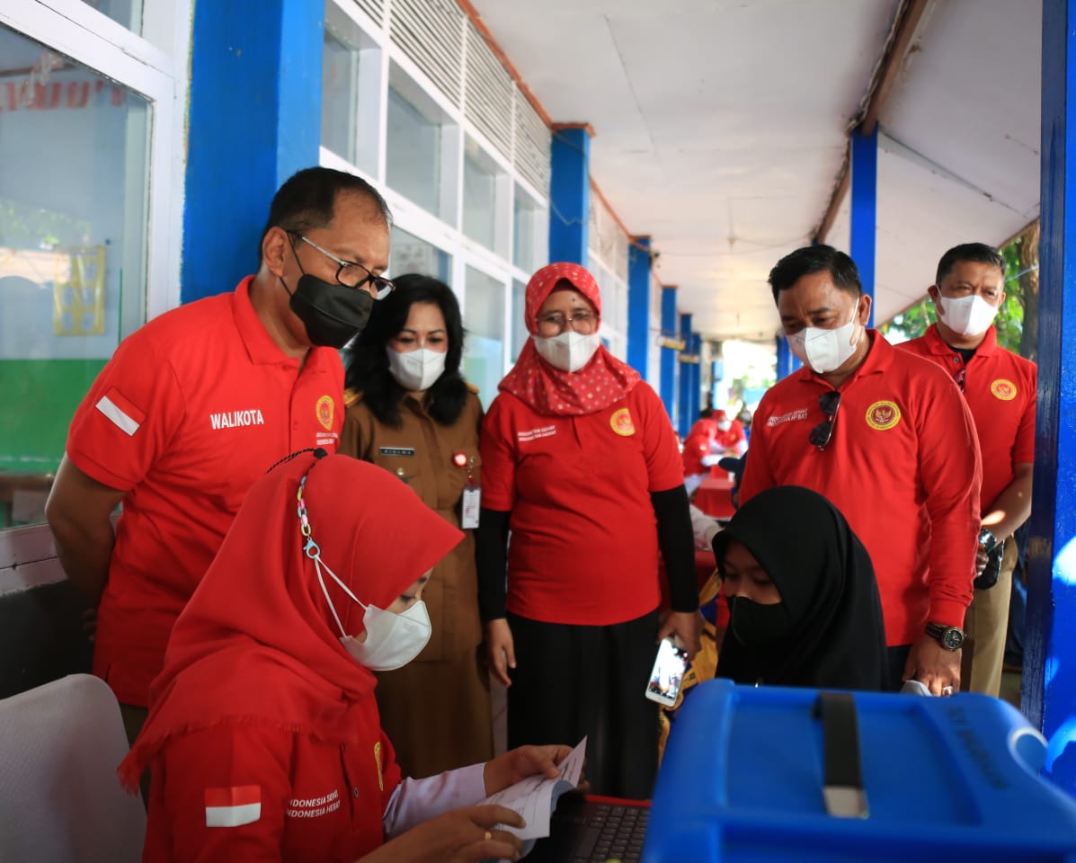 Usai memberikan sambutannya, Wali Kota Danny melihat langsung pelaksanaan vaksin dan memberikan semangat bagi pelajar yang telah di vaksin.(*)