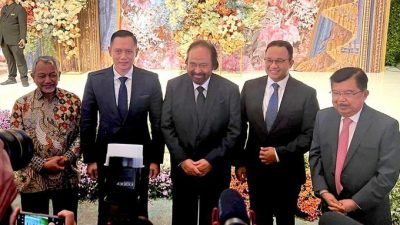 JAKARTA, Newstime.id – Viral baru-baru ini antara mantan Presiden Jusuf Kalla (JK), Ketua Umum Partai NasDem Surya Paloh, Ketua Umum Demokrat Agus Harimurti Yudhoyono (AHY), dan Presiden PKS Syaikhu tampak mesra berfoto bersama.