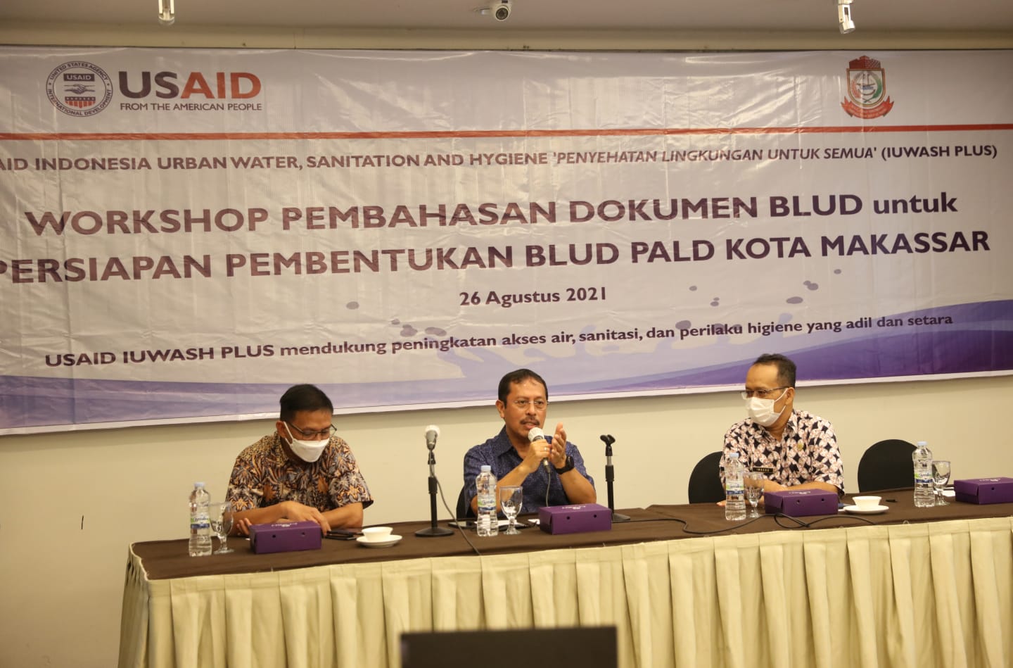 Makassar,Newstime.id – Sekretaris Daerah Kota Makassar, Muhammad Ansar, membuka secara resmi workshop pembahasan dokumentasi BLUD untuk persiapan pembentukan BLUD PALD di kota Makassar. Workshop digelar bekerja sama dengan USAID IUWASH Plus, bersama Dinas PU Kota Makassar, di Hotel Claro, Kamis (26/08/2021).