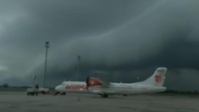 Dilansir dari detiksulsel. Dalam video beredar, Senin (30/1/2023), tampak langit gelap dengan awan menggulung menyerupai gelombang. Terlihat sejumlah pesawat di apron bandara.