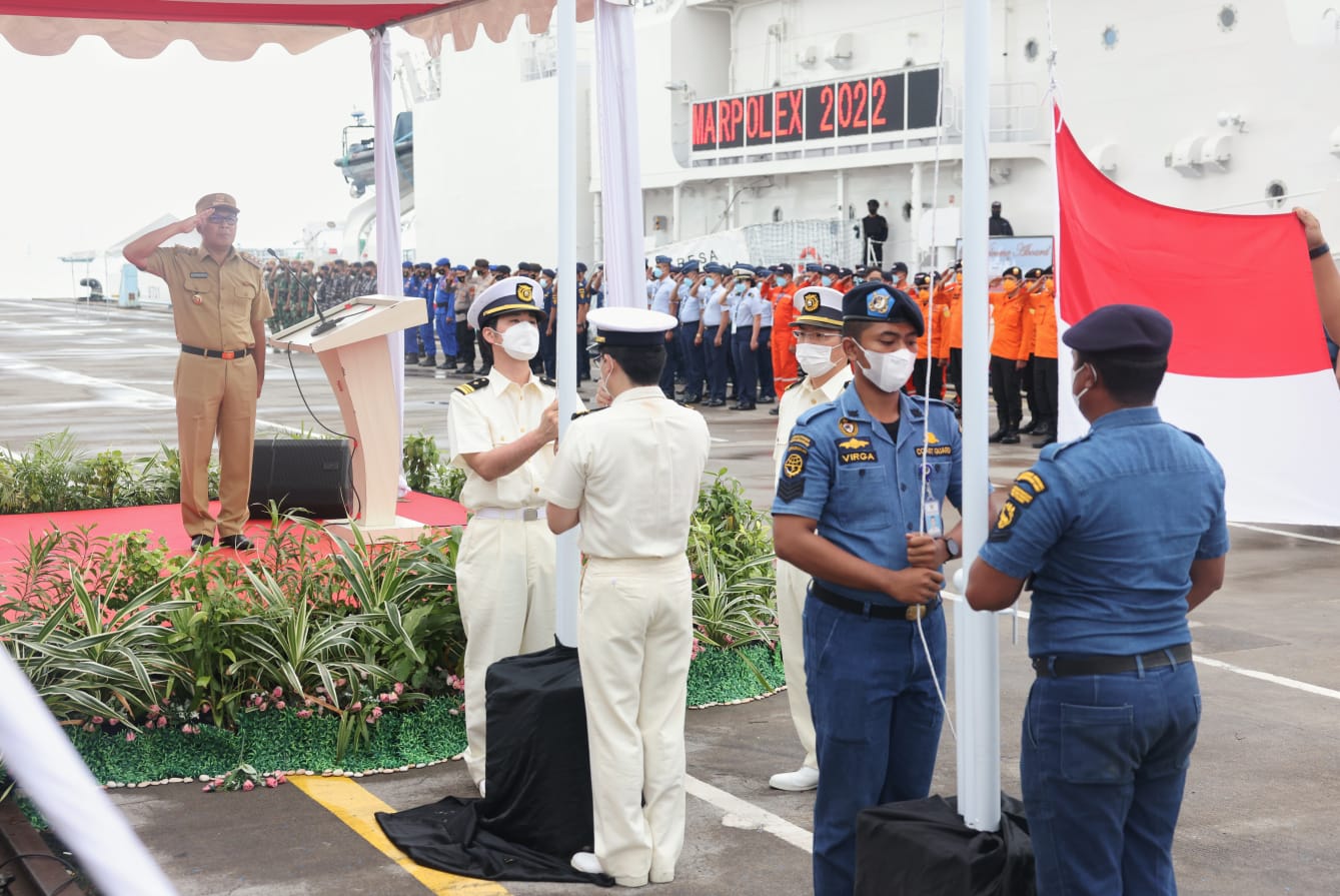 MAKASSAR,Newstime.id — Wali Kota Makassar, Moh. Ramdhan ‘Danny’ Pomanto menjadi IRUP penutupan latihan bersama penanggulangan tumpahan minyak di laut (Marrine Pollution Exercise- Marpolex yang diikuti oleh Phillippines Coast Guard dan Japan Coast Guard, di Pelabuhan Soekarno Hatta Makassar, Jumat (27/5/22).