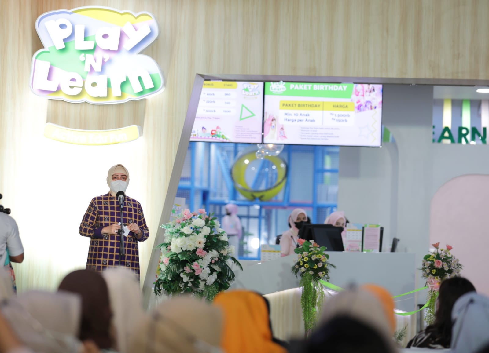 MAKASSAR,Newstime.id – Ketua TP PKK Kota Makassar Indira Jusuf Ismail menghadiri grand opening Play ‘N’ Learn Timezone di Mall Ratu Indah Makassar, Selasa (21/6/2022).