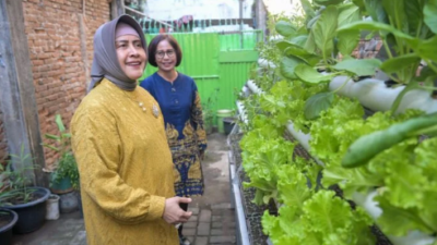 Indira mengapresiasi suasana gang perumahan warga yang berhasil disulap jadi lorong yang asri dan segar dan berdaya ekonomi.