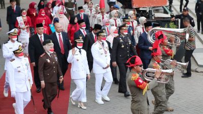 MAKASSAR,Newstime.id – Korsik (Korps Musik) Satpol PP (Satuan Polisi Pamong Praja) Makassar mengiringi pengibaran bendera Merah Putih pada Upacara Peringatan Detik – Detik Proklamasi Kemerdekaan Republik Indonesia, di Anjungan City of Makassar, Pantai Losari, Rabu (17/08).