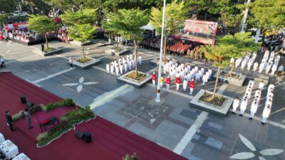 Penurunan bendera kali ini dipimpin oleh Penjabat (Pj) Sekretaris Daerah Kota Makassar, Firman Hamid Pagarra, yang bertindak sebagai Inspektur upacara.