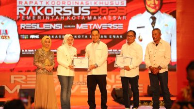 Penghargaan tersebut diberikan langsung pada Rapat Koordinasi Khusus (Rakorsus) Pemkot Makassar 2023 yang dihelat di Four Point By Sheraton, Selasa (14/03/2023).