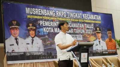 MAKASSAR, Newstime.id – Pemerintah Kecamatan Tallo menggelar Musyawarah Rencana Pembangunan (Musrenbang) Tahun Anggaran 2023, di Hotel Claro, Jumat (3/02/2023).