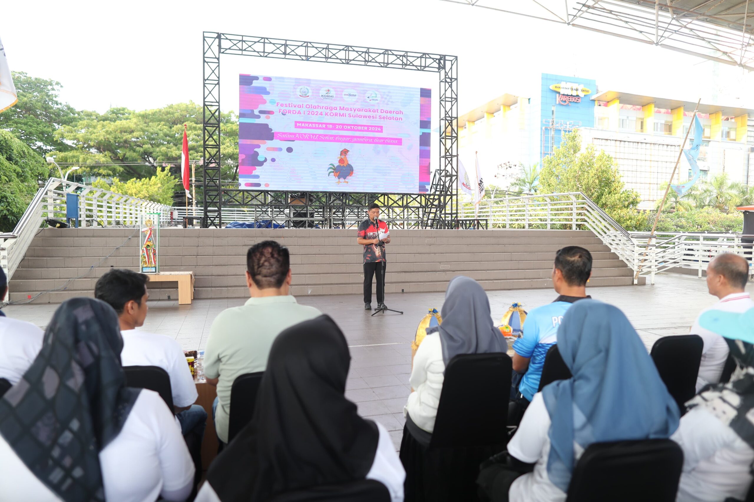 MAKASSAR, Pjs Wali Kota Makassar, Andi Arwin Azis, secara resmi menutup Festival Olahraga Masyarakat Daerah (FORDA) 2024 yang diselenggarakan oleh Komite Olahraga Masyarakat Indonesia (KORMI) Provinsi Sulawesi Selatan di Lapangan Karebosi, Minggu (20/10/2024).