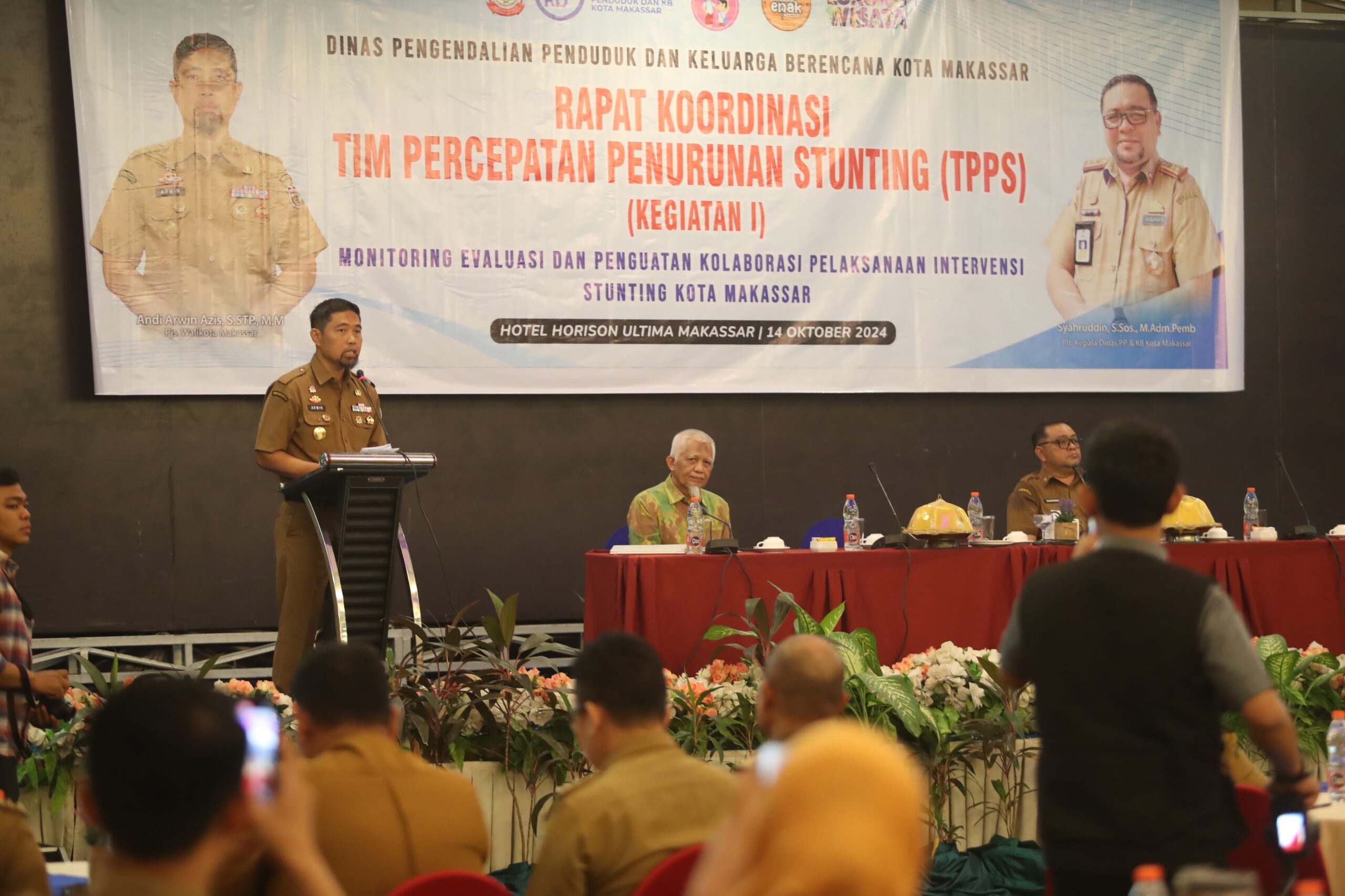 MAKASSAR, Pjs. Wali Kota Makassar, Andi Arwin Azis membuka Rapat Koordinasi Tim Percepatan Penurunan Stunting (TPPS) yang berlangsung di Hotel Horison Ultima, Senin (14/10).