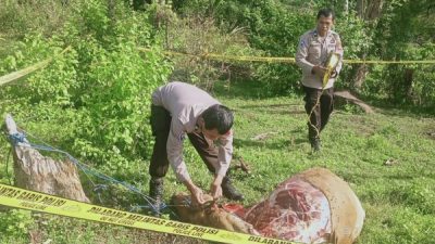 “Keduanya sudah dalam keadaan telah dipotong dan sebagian dagingnya telah hilang atau dicuri. Bagian paha dan kaki depan tidak ada,” terangnya.
