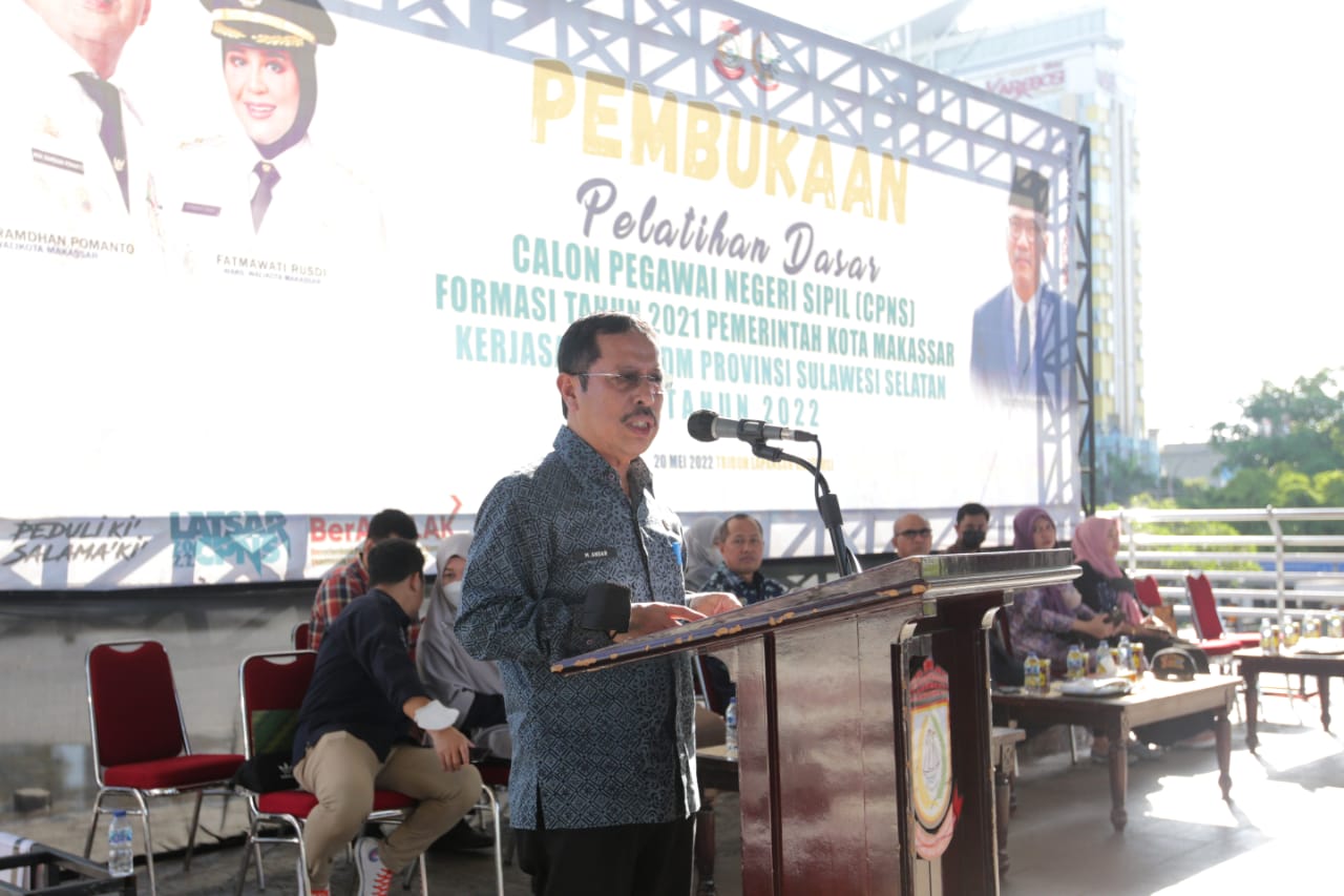 MAKASSAR,Newstime.id – Sekretaris Daerah Kota Makassar, M. Ansar, secara resmi membuka pelatihan dasar (Latsar) Prajabatan CPNS Formasi Tahun 2021, di Tribun Karebosi, Jumat (20/05/2022).