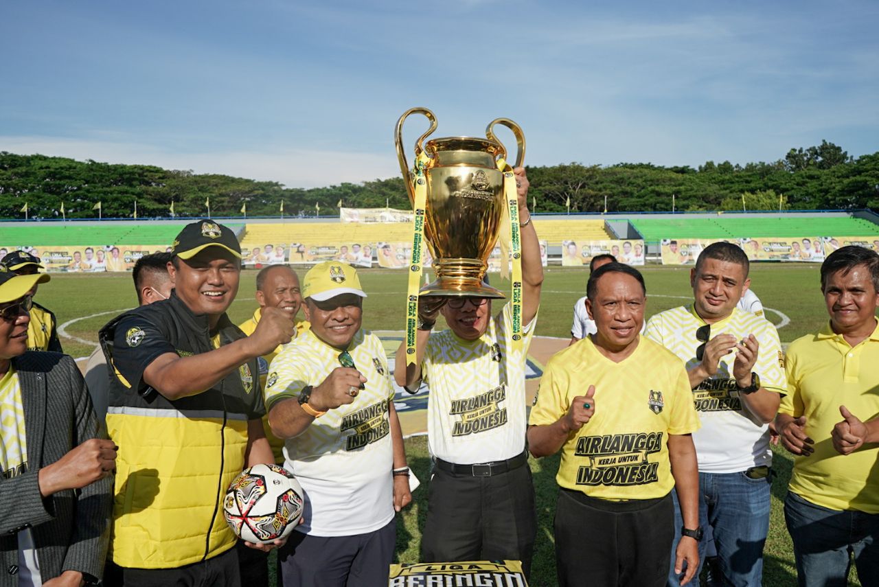 Bukti Airlangga Hartarto Peduli Sepak Bola Sulsel, Pemain Pelatih Sampai Wasit Terbaik Raih Beasiswa Liga Beringin