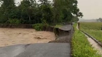 “Jalan yang terputus berbatasan dengan sawah, ada sekira 35 hektare areal persawahan yang terancam, apalagi saat sungai kembali meluap,” terangnya.