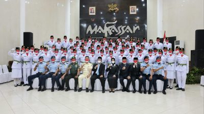 MAKASSAR,Newstime.id — Wali Kota Makassar, Moh. Ramdhan Danny Pomanto didampingi Wakil Wali Kota, Fatmawati Rusdi mengukuhkan Pasukan Pengibar Bendera Pusaka (Paskibraka) tingkat Kota Makassar tahun 2022, di Baruga Anging Mammiri, Senin (15/08).
