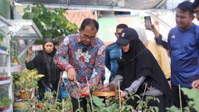 Sembari melihat dan menyapa warga sekitar, Danny menyempatkan untuk panen sayuran seperti tomat dan pakcoy. Tak lupa, Ia berpesan agar camat dan lurah harus kompak dan melihat potensi yang ada.